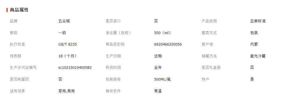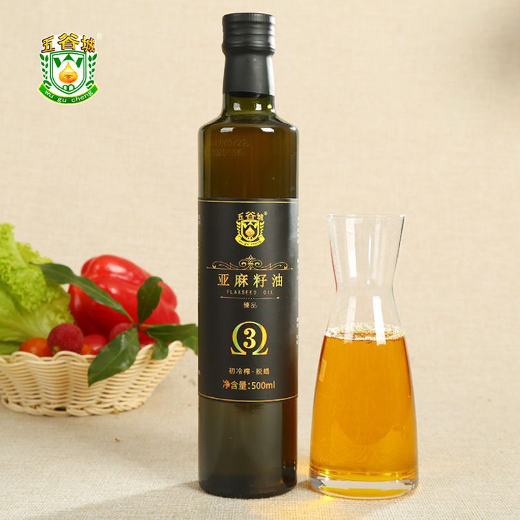 内蒙古五谷城亚麻籽油500ML 亚麻油 冷榨食用油 月子油 厂家批发