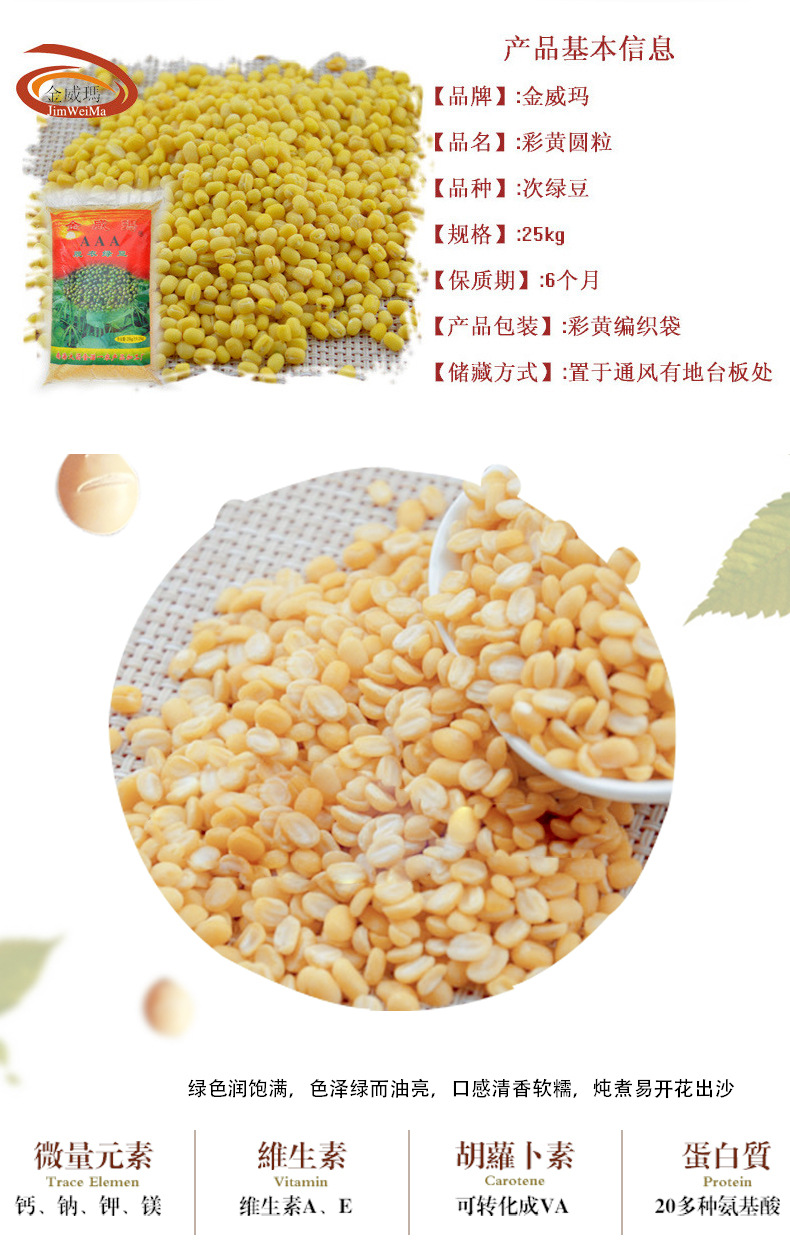 金威码绿豆50斤一袋圆粒脱皮完整绿豆沙原料工厂批发大颗粒脱皮豆