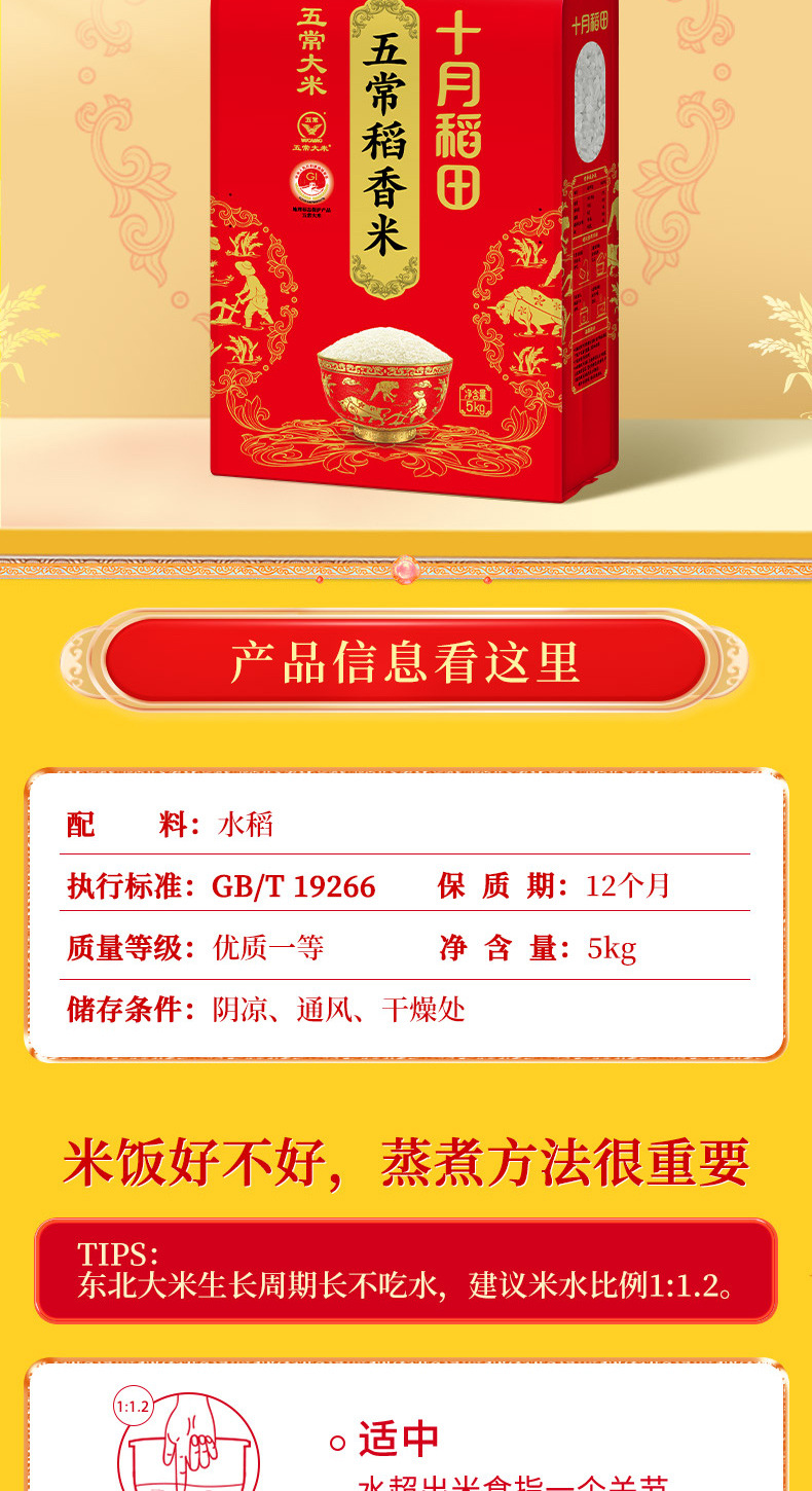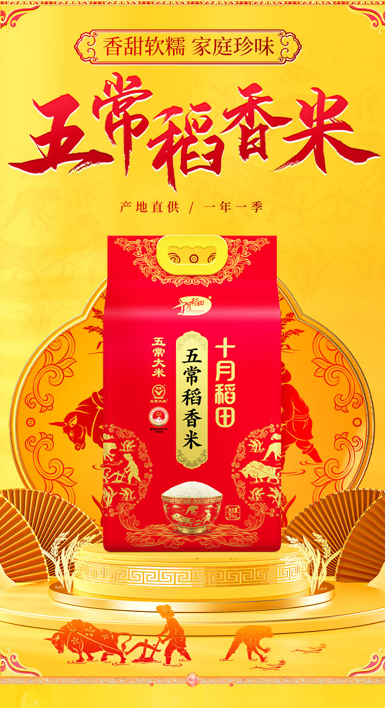十月稻田 五常稻香米粳米真空装10斤一年一季