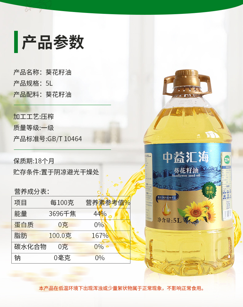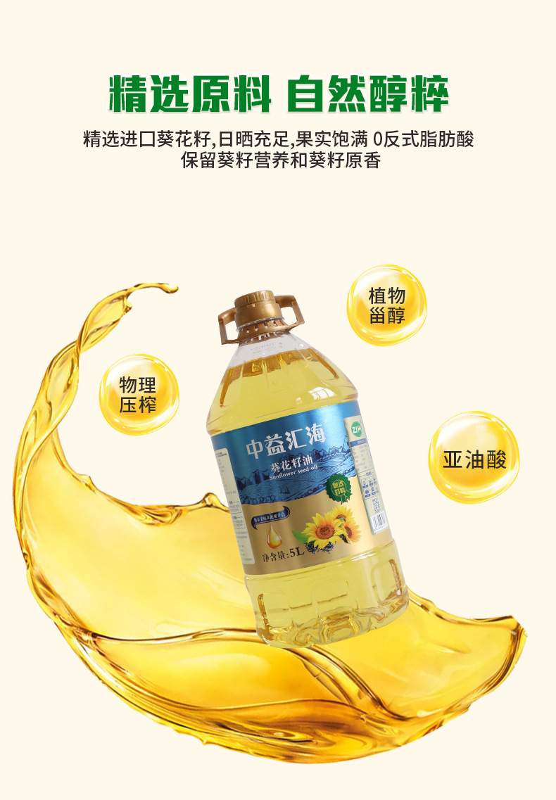定制葵花籽油5L 原装无烟精炼葵花油 一级物理压榨葵花籽油
