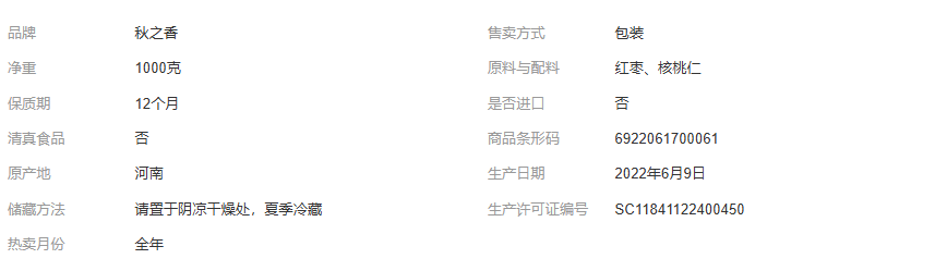 秋之香枣仁派1000g年货礼盒健康休闲零食