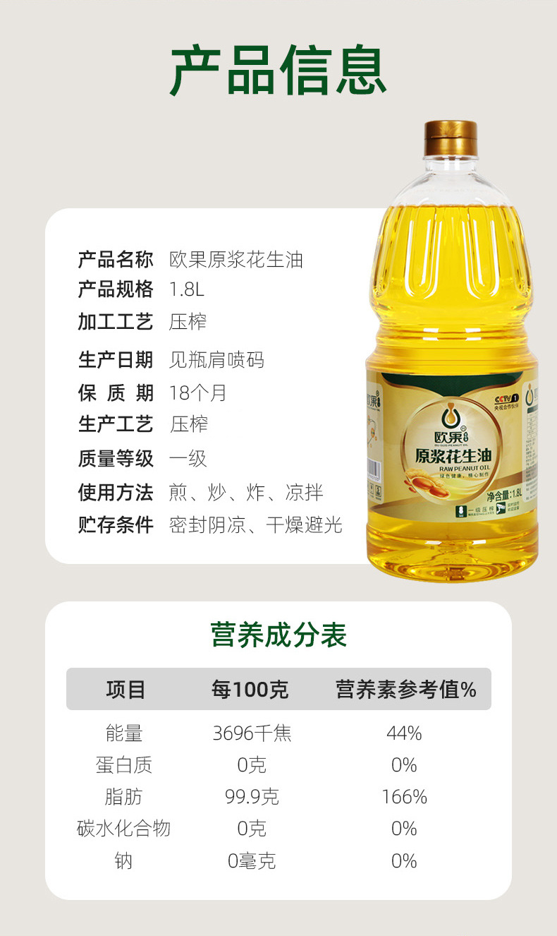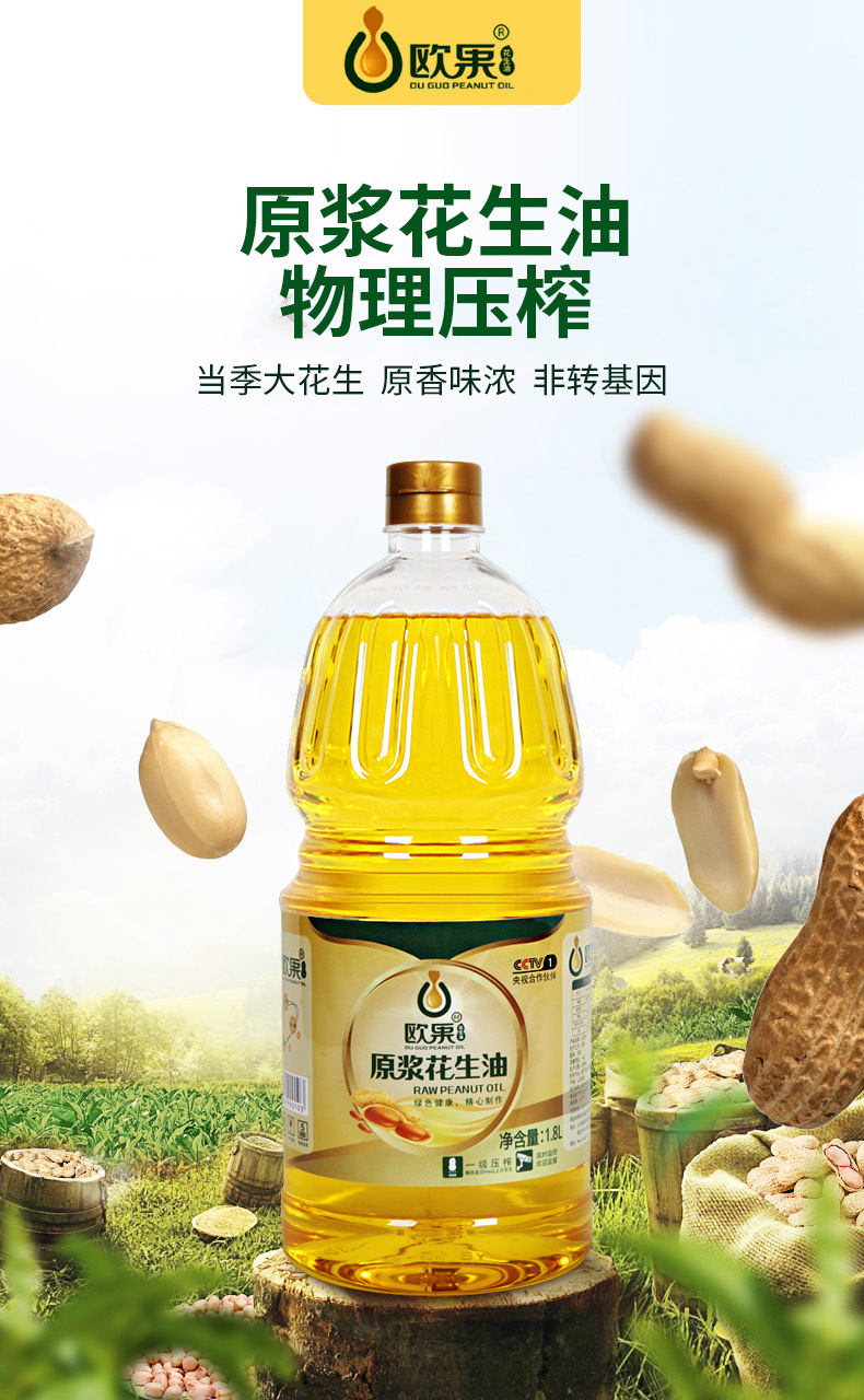 批发欧果花生油1.8L家用烹饪小瓶食用油企业团购福利压榨花生油
