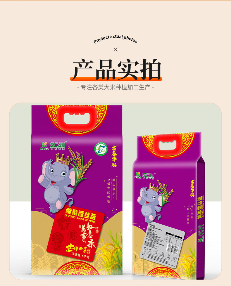 主食晶莹剔透厂家批发大米软硬适中米饭细长吉象华农紫象香丝苗米