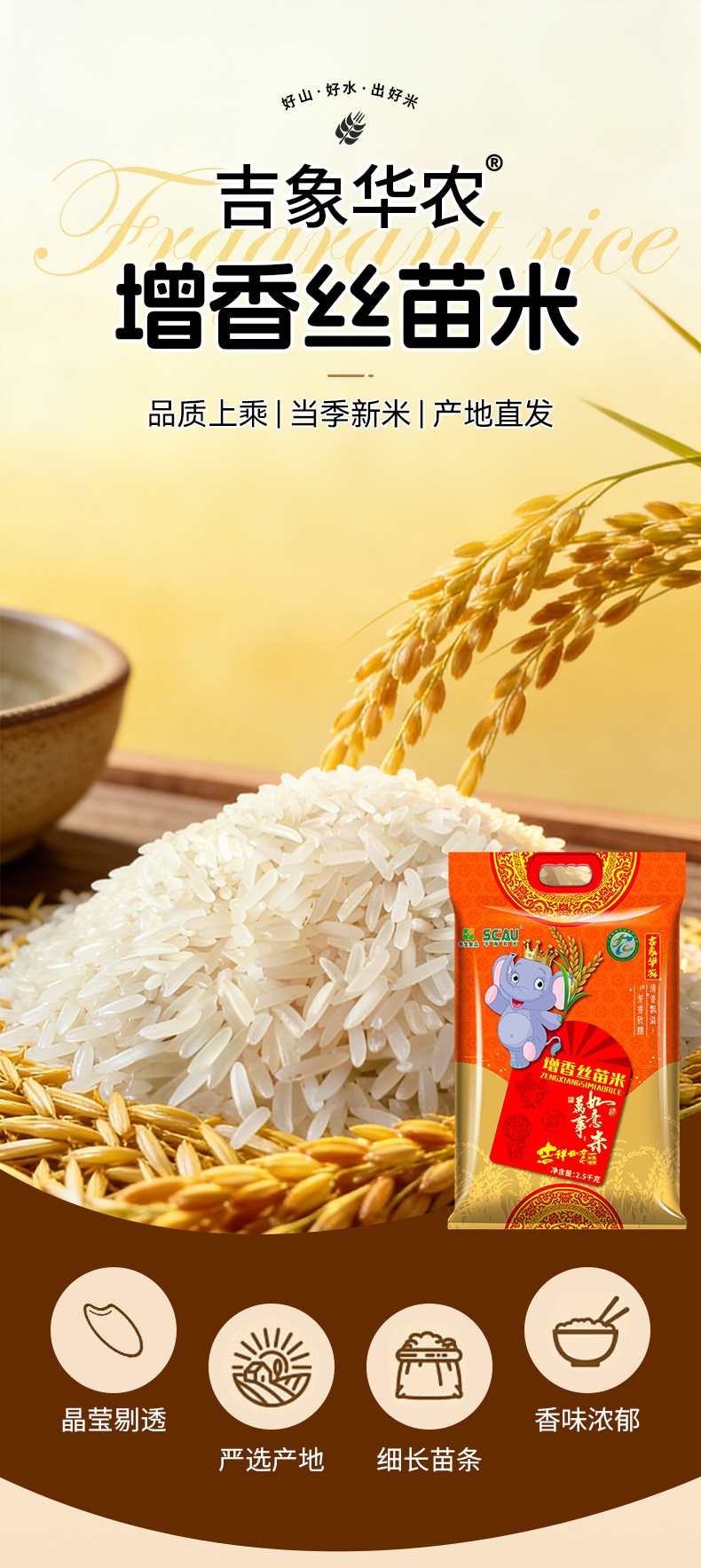 2.5KG细长苗条大米厂家批发主食米饭软滑可口吉象华农增香丝苗米