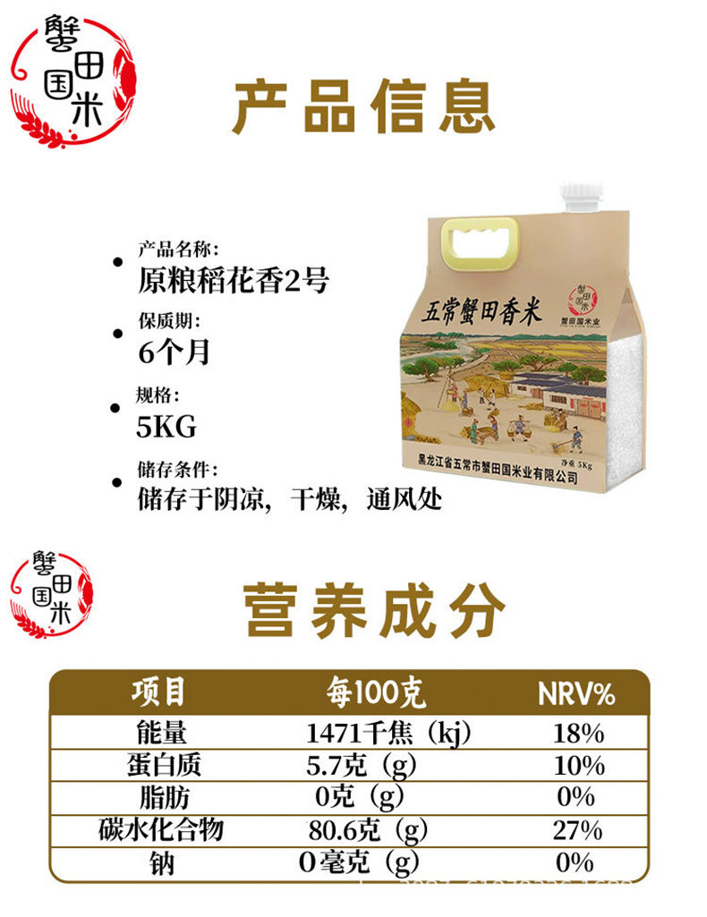 正宗蟹田国米五常大米原粮稻花香2号10斤东北产地直发当季新米