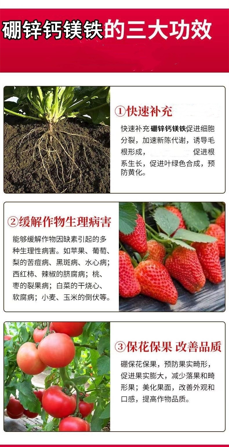 钙镁硼锌铁果树蔬菜专用生根绿叶补充中量元素水溶肥硼锌钙 镁铁肥