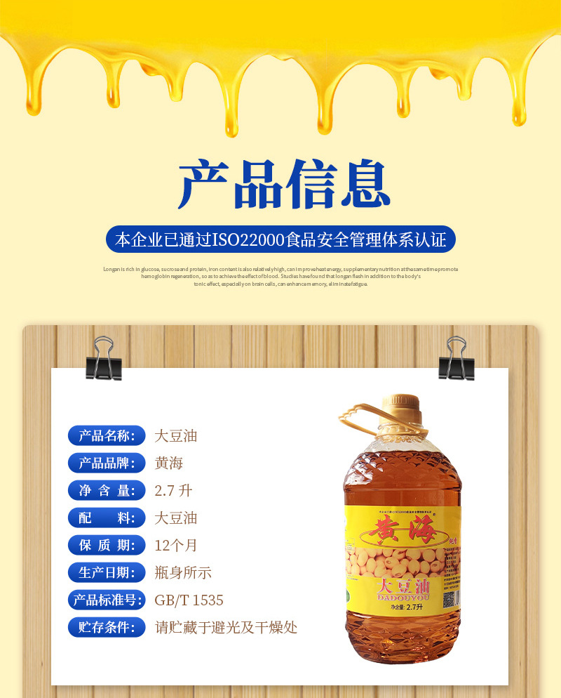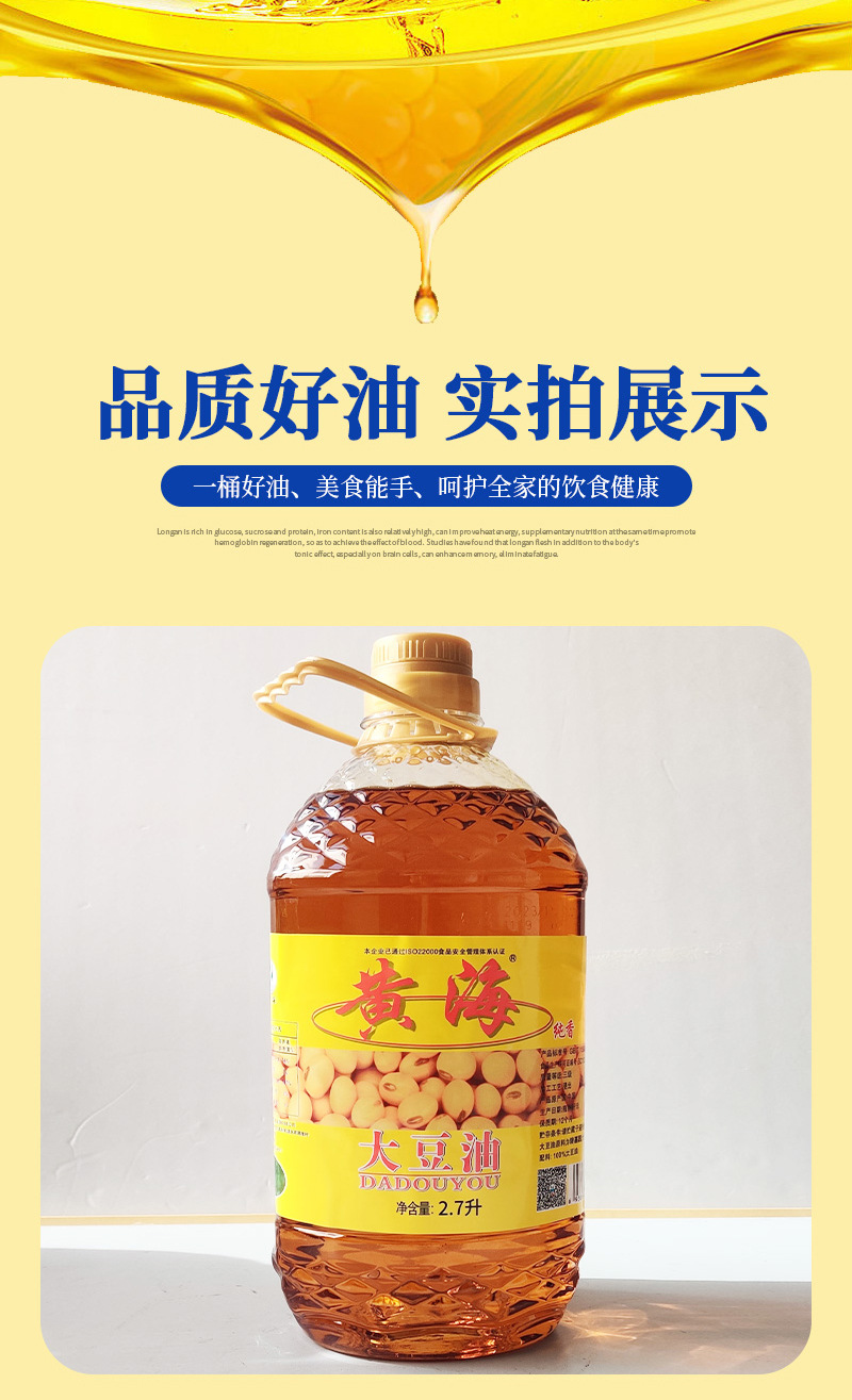 黄海纯香大豆油 2.7升大捅家用商用食用植物油 厂家批发