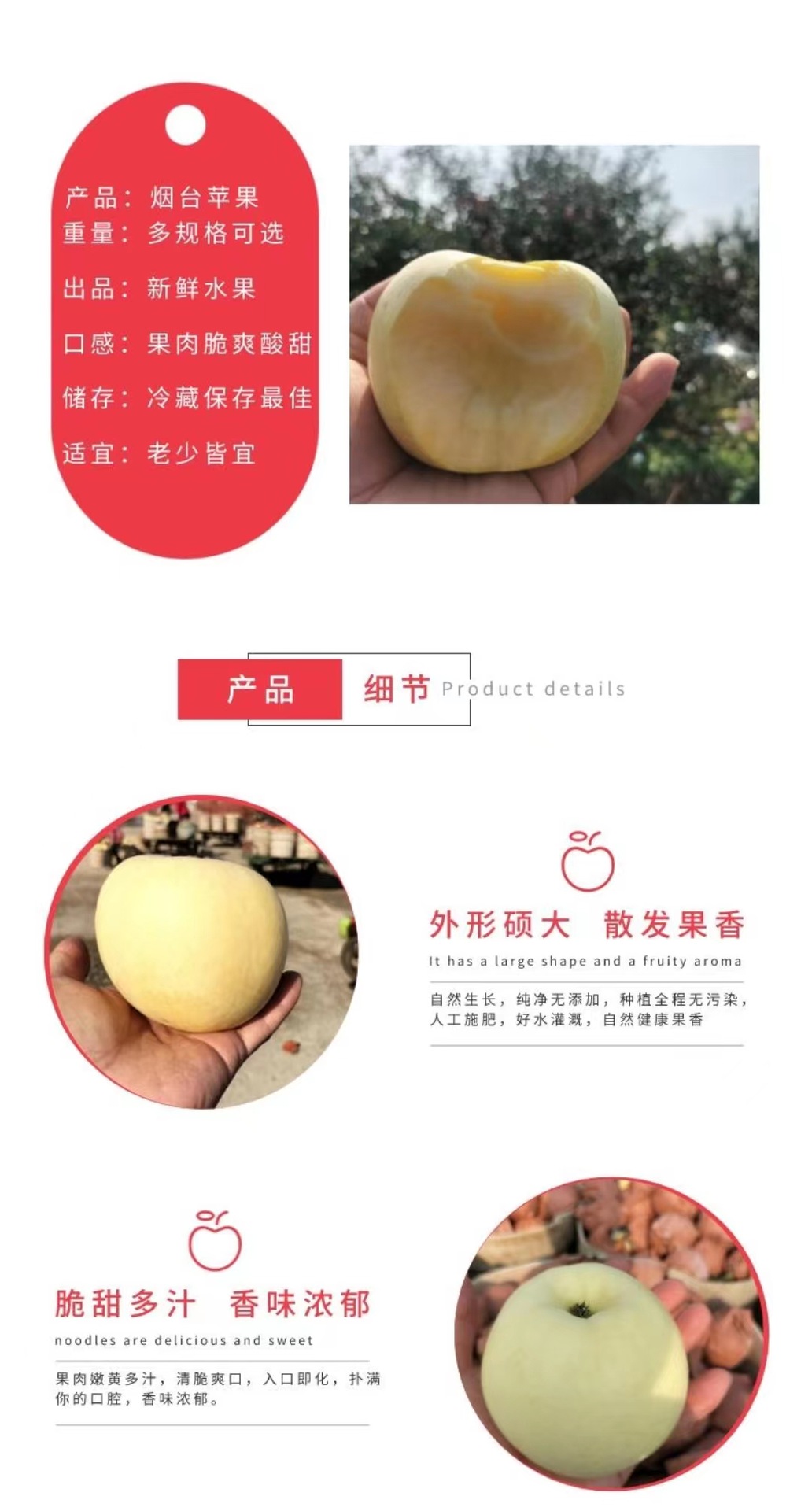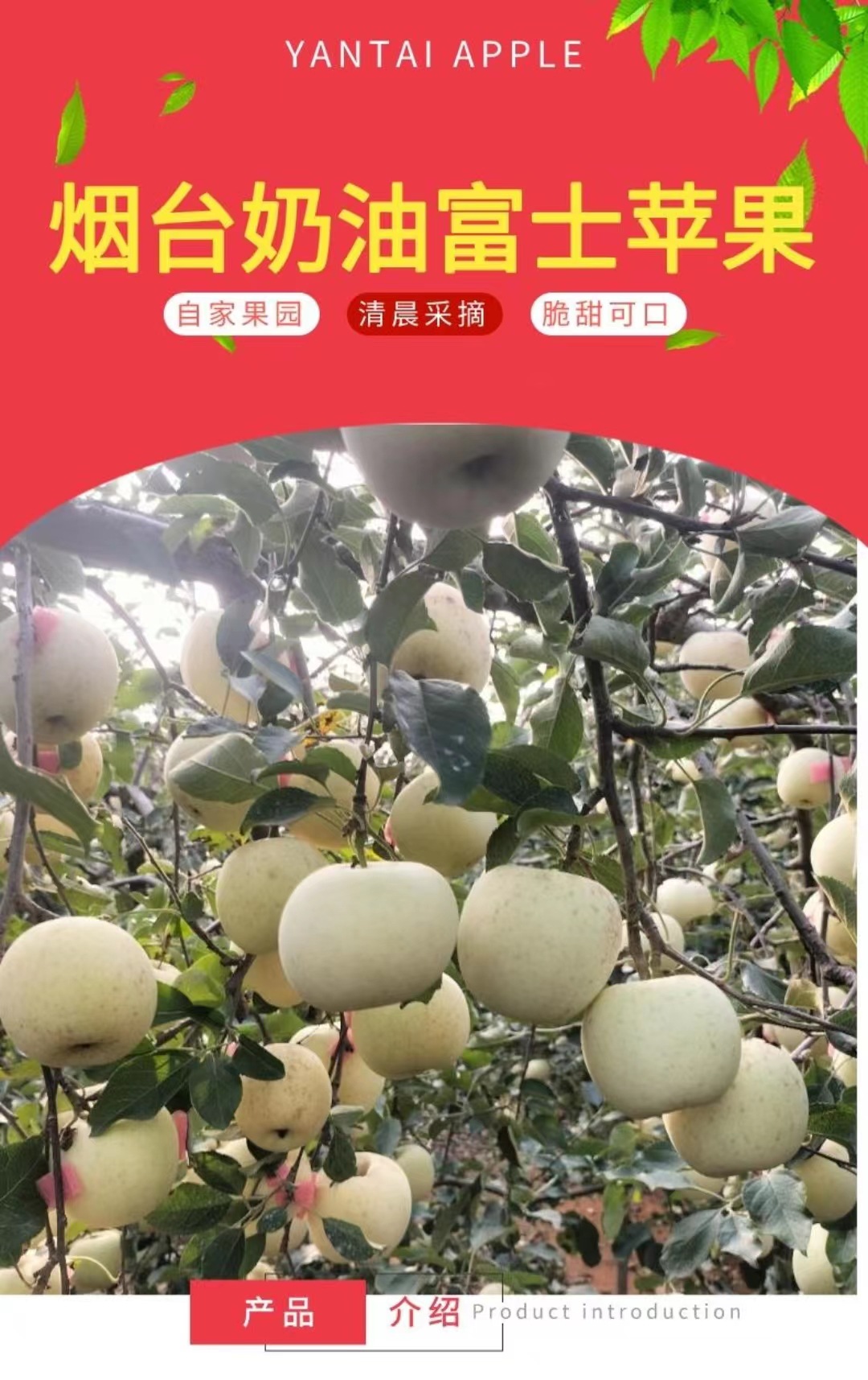 山东烟台黄金奶油富士苹果脆甜多汁礼盒冰糖心水果5斤装支持代发