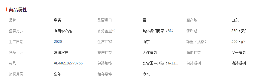 阜实商贸海鲜批发大连即食海参500g 辽参刺参 海参海鲜水产干货