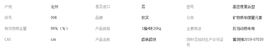 海兴县秋实饲料有限公司发布的厂家批发密度育肥 矿物质牛羊鹿舔砖 10箱图集库