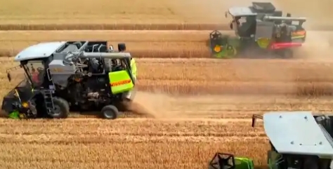 眼下,山东省邹城市50多万亩小麦陆续进入收获期。依托新机具、新技术的推广应用,村民们抢抓晴好天气开镰收割,保障夏粮丰收。