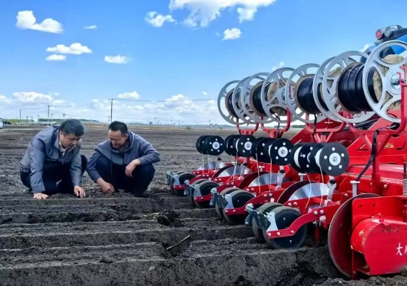近日,在黑龙江省齐齐哈尔市梅里斯达斡尔族区广袤的黑土地上,无人驾驶胡萝卜播种机正在作业,在大地上犁出一条条美丽的“平行线”。