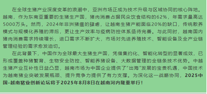 “出海”新机遇:2025中越猪业创新论坛行程与亮点前瞻