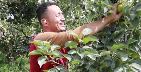 阿克苏市拜什吐格曼乡尤喀克兰干村果农马云飞说:“我承包了480亩地的香梨,今年香梨的长势挺不错的,每亩的产量在两吨半左右,现在已经被老板全部订购,今年的收入挺不错的。”