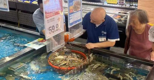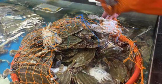 连日来,每天傍晚18时左右,爱妃水产摊位前便开始忙碌。一车接一车的梭子蟹运抵门店,投入配备完整海产养殖设备的海水缸,使之保持与海洋相近的盐度、温度及溶氧条件,确保梭子蟹能保持鲜活状态。