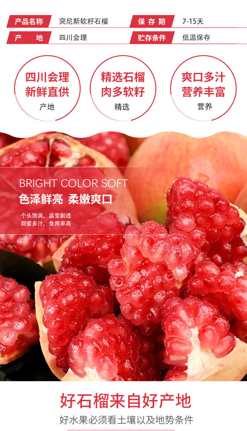 秭归县嘉鲜果蔬产销专业合作社发布的四川会理突尼斯红石榴软籽石榴手剥新鲜采摘爆甜多汁果园发货图集库