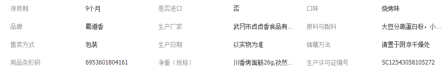 成都蜀道香食品有限公司发布的蜀道香面筋素肉26g川渝零食小零食食品小吃批发吃的熟食超 市美食图集库