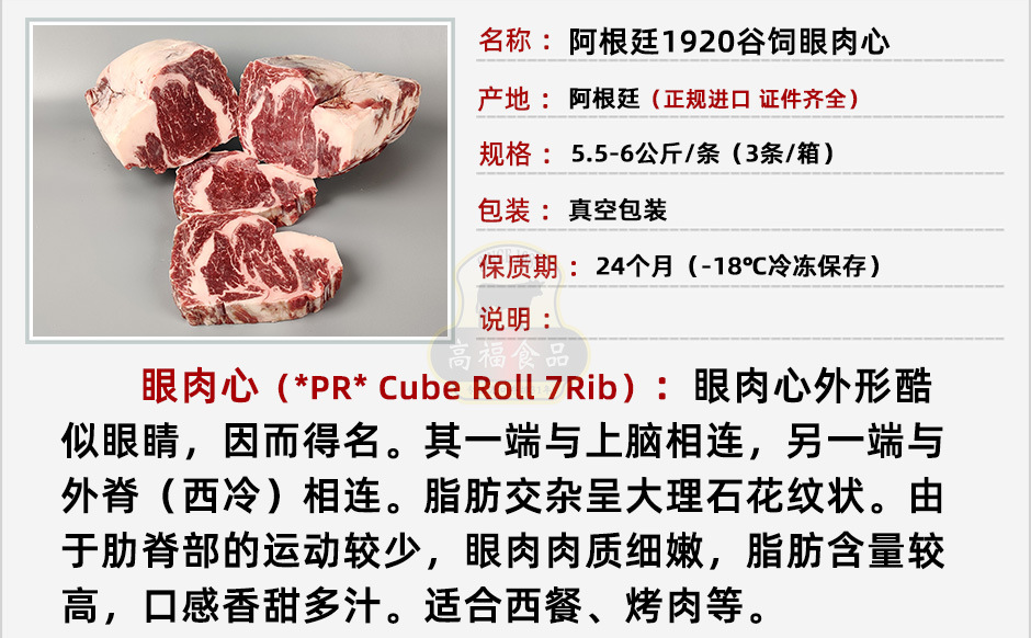 广州高福食品有限公司发布的阿根廷1920谷饲眼肉心原切牛排肋眼雪花牛肉批西餐日料酒店食材发图集库
