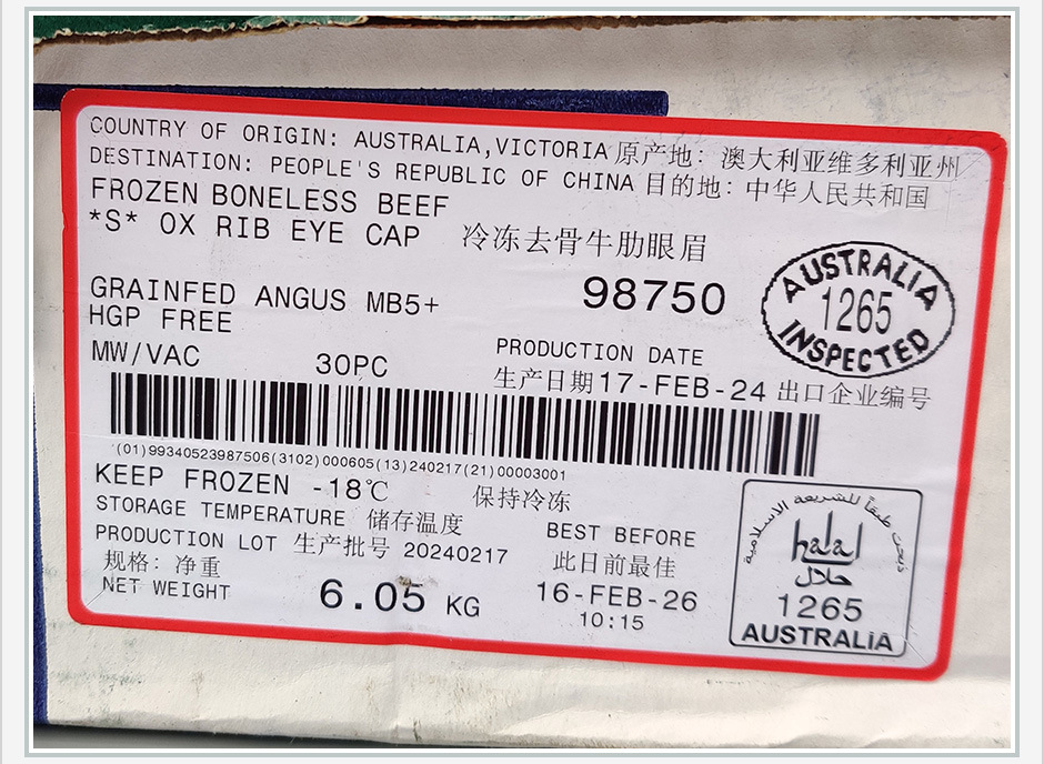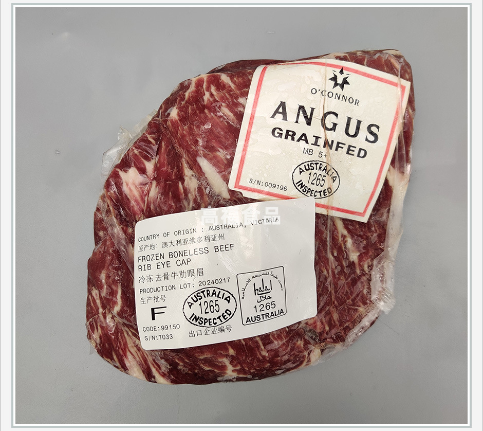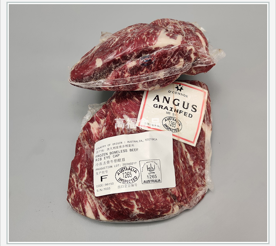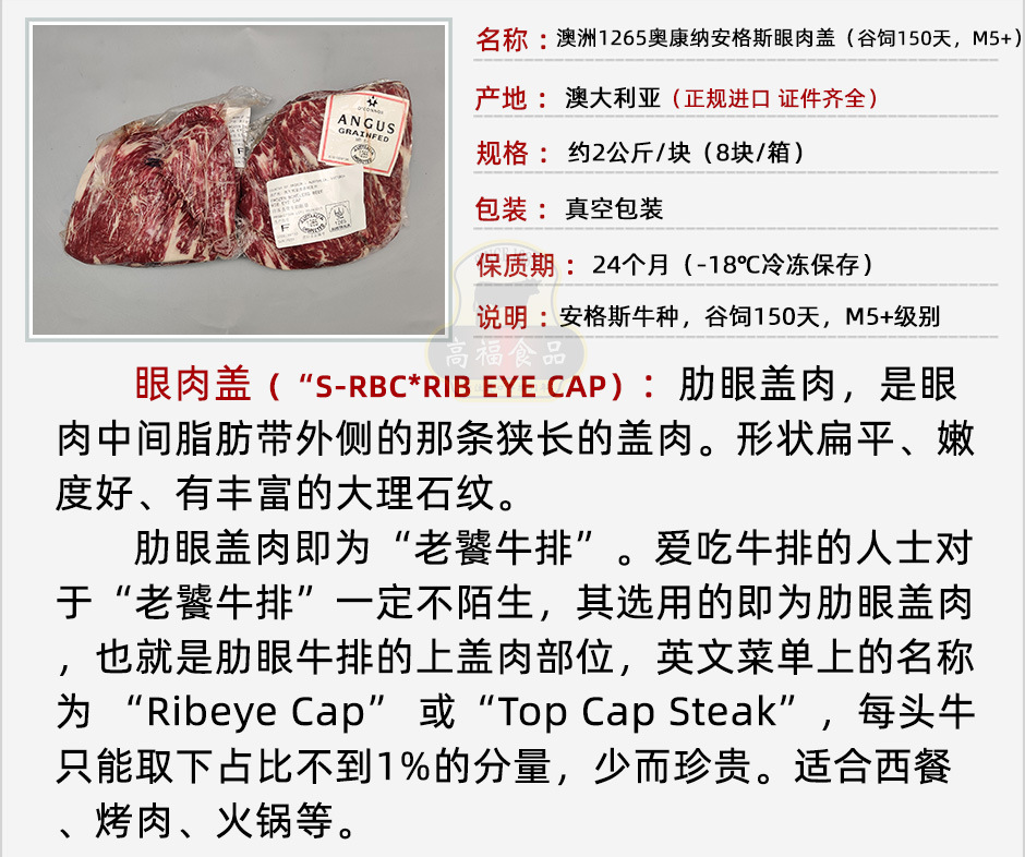 广州高福食品有限公司发布的澳洲1265奥康纳安格斯眼肉盖谷饲150天M5+牛排雪花原切肉眼盖牛扒图集库
