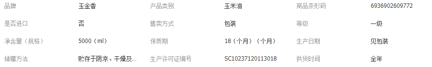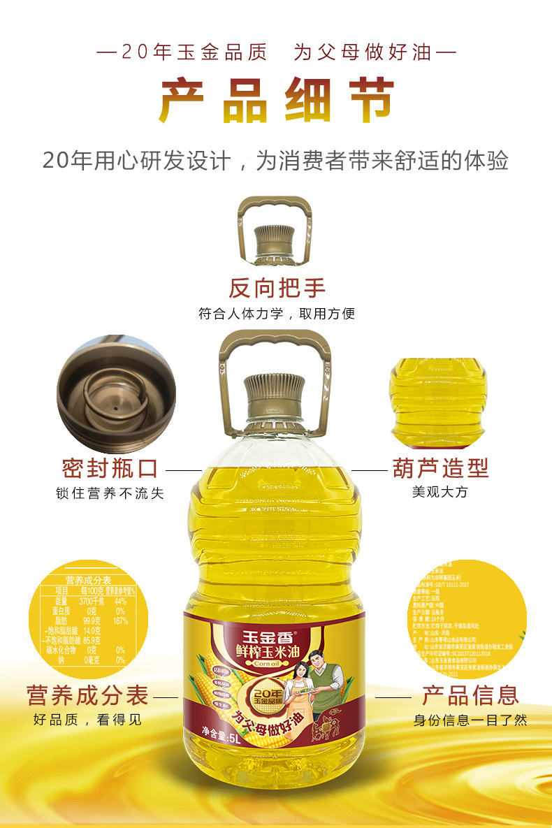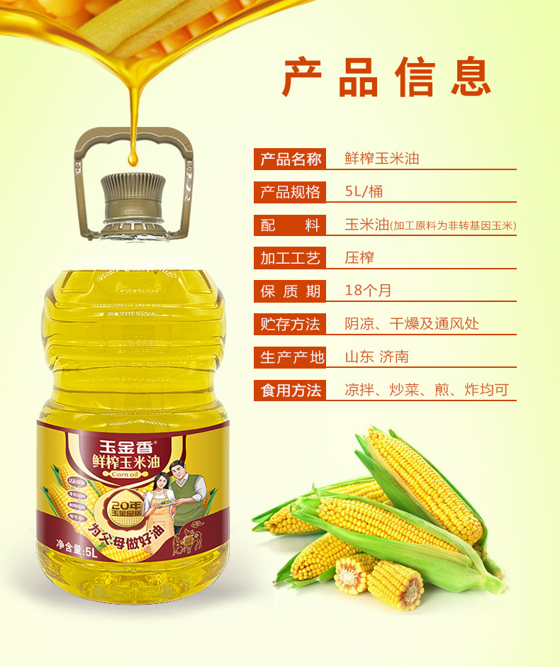 山东玉金香食品有限公司发布的食用油山东玉金香食品玉米油5升压榨一级玉米胚芽富含植物甾醇油图集库