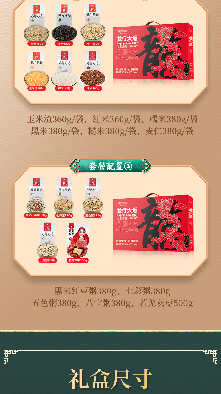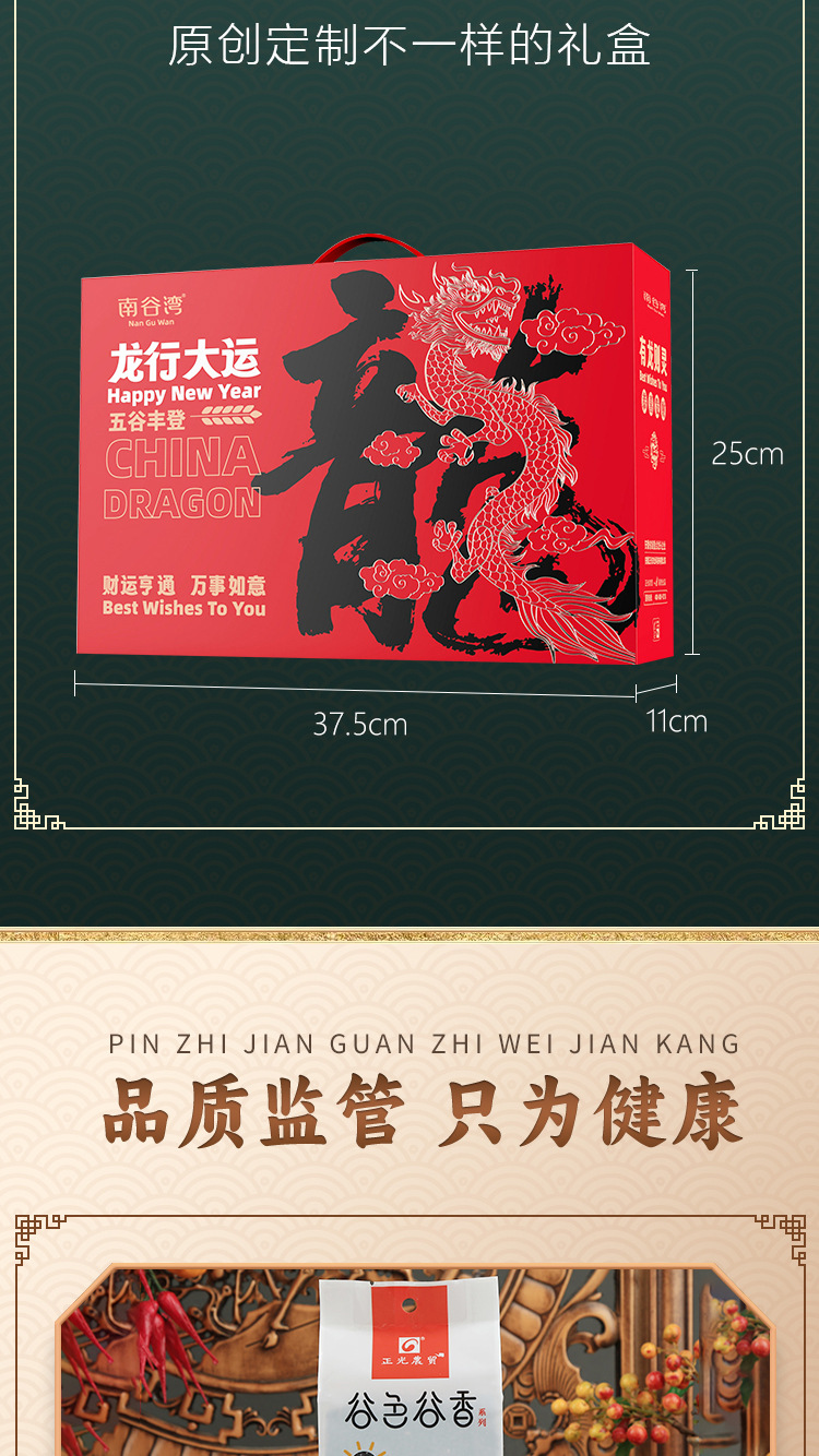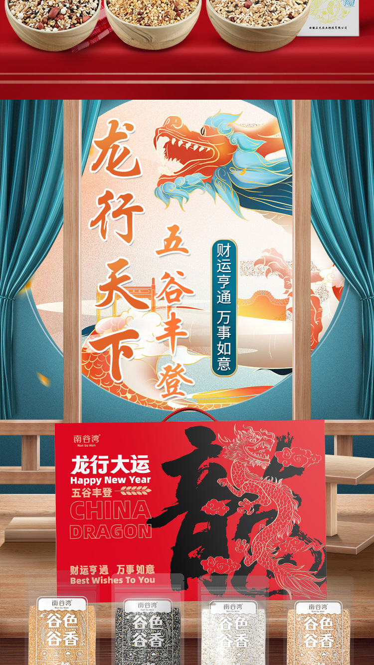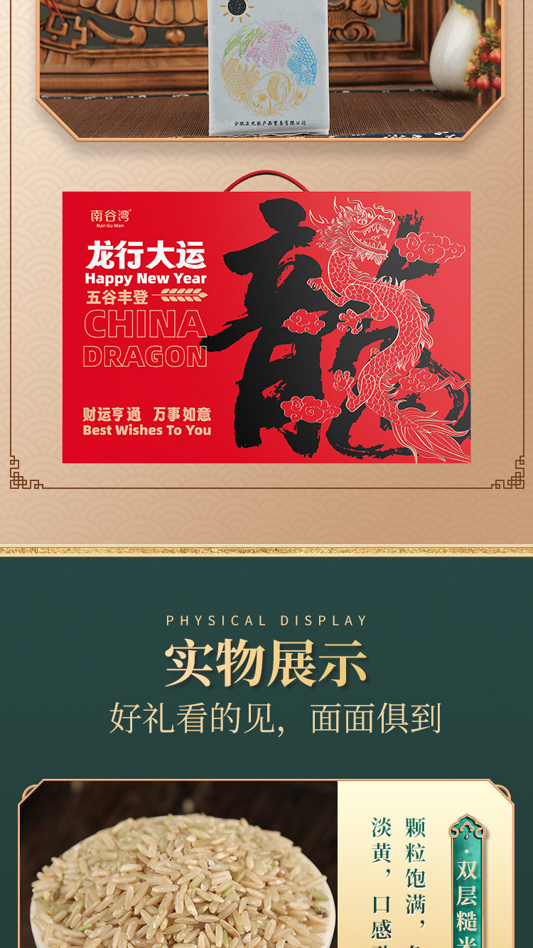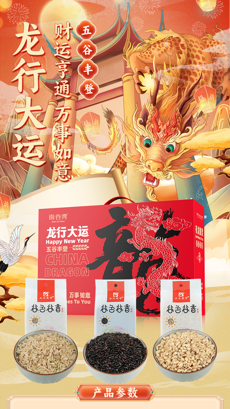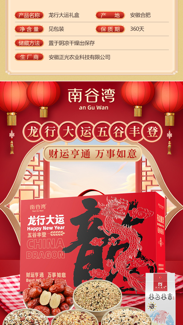 安徽正光农业科技有限公司发布的南谷湾龙行大运龙年限定五谷杂粮礼盒黑米麦仁粗粮金融保险会销图集库