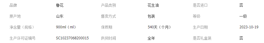 上海毅旺实业有限公司发布的鲁花5s压榨一级花生油900ml 物理压榨特香纯正食用油家用商用图集库