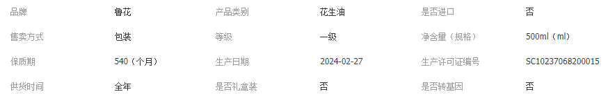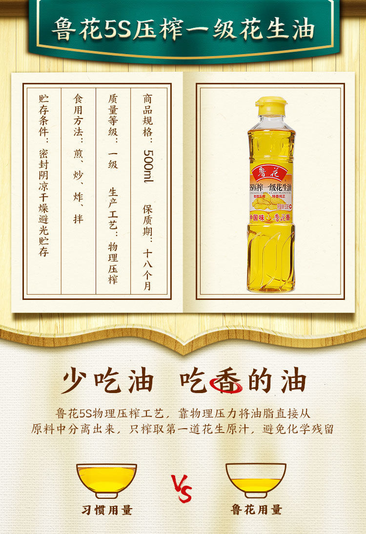 上海毅旺实业有限公司发布的鲁花5s压榨一级花生油500mL 物理压榨特香纯正食用油家用商用图集库