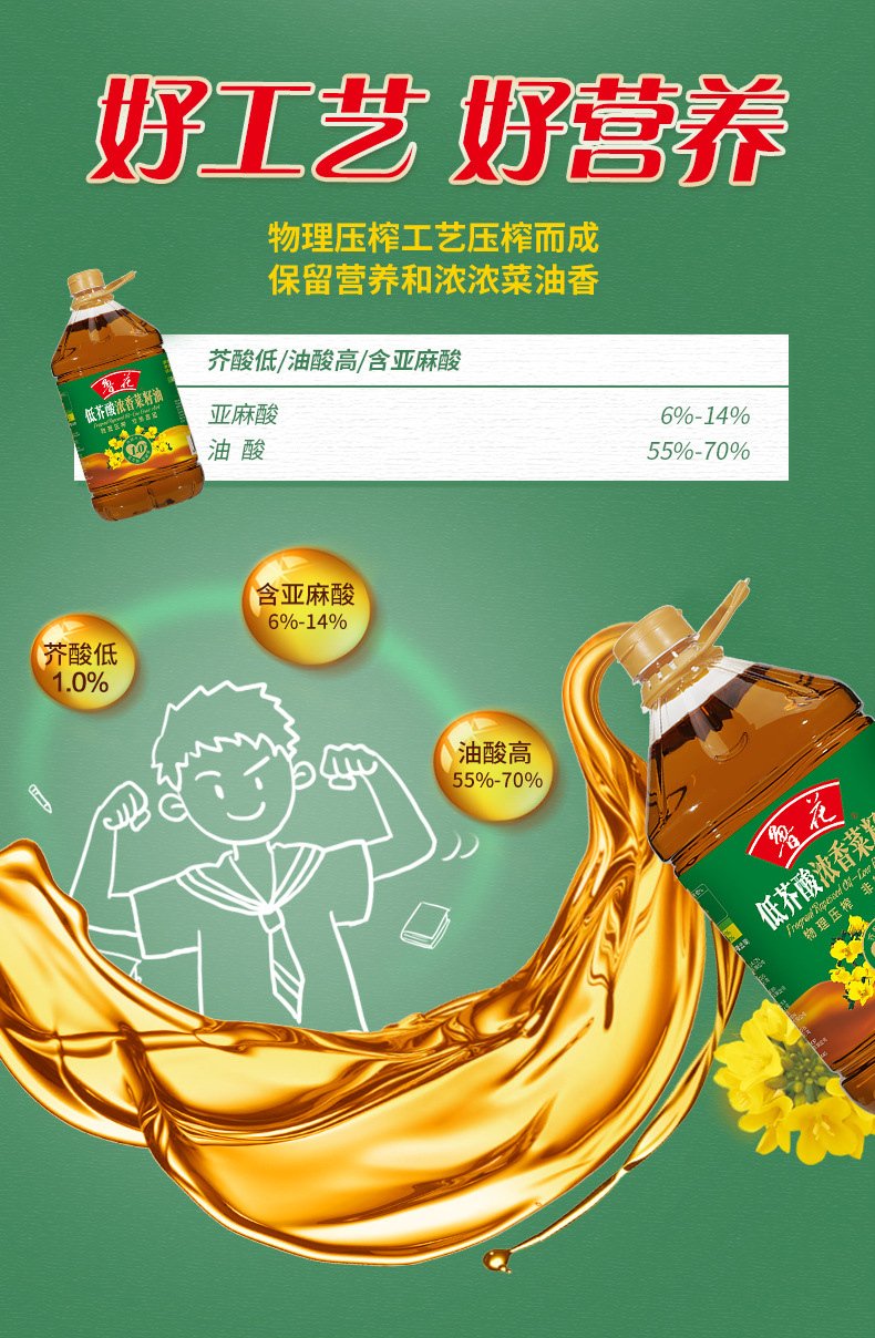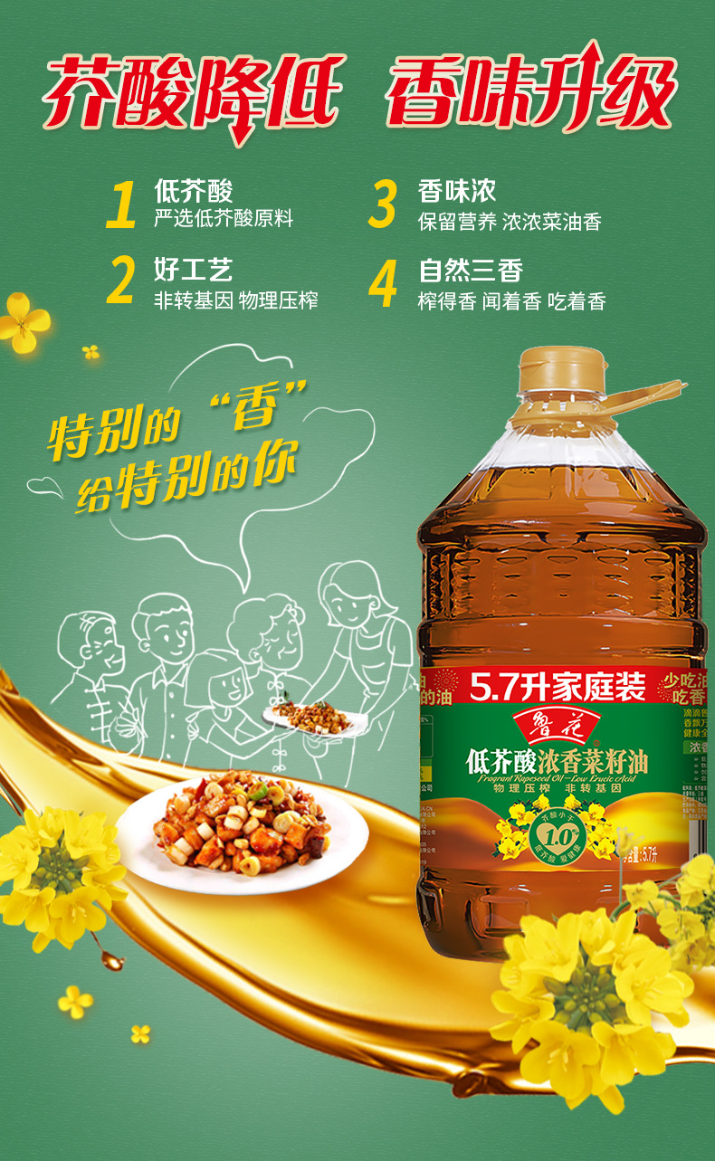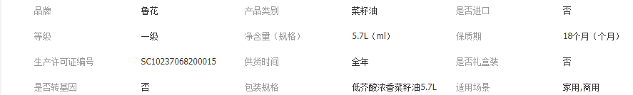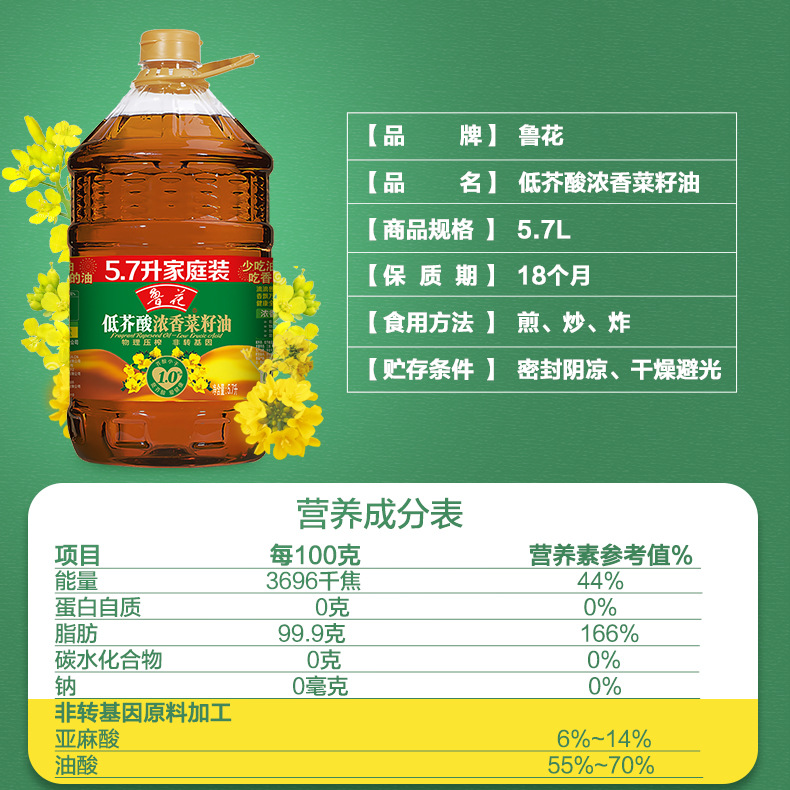 上海毅旺实业有限公司发布的鲁花 低芥酸浓香菜籽油5.7L 非转基因 物理压榨家用批发团购图集库