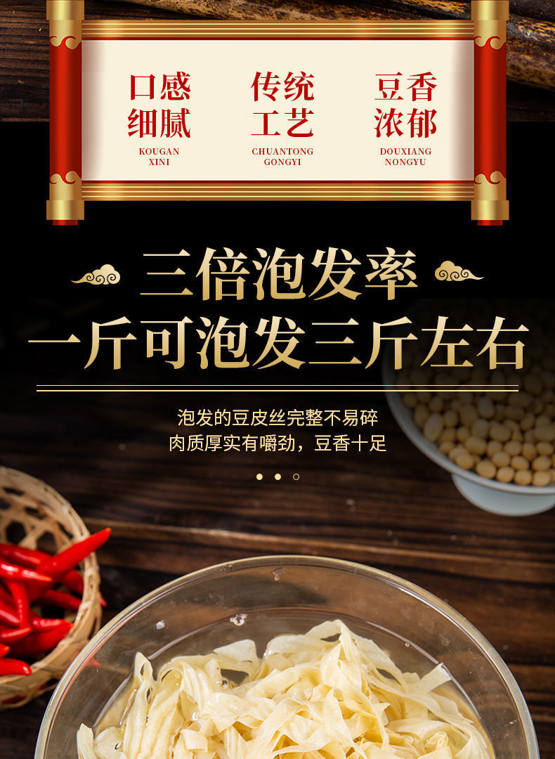 枣庄市恒旺豆制品厂发布的零售豆皮厂家干货山东豆制品素食斋菜蛋白肉大豆素肉油豆皮 豆皮丝图集库