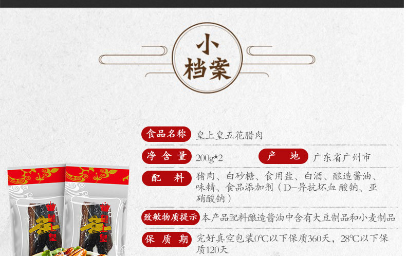 广州瀚进贸易有限责任公司发布的皇上皇广式腊肉200g正宗广东特产咸甜口腊肉腊味煲仔饭批发团购图集库
