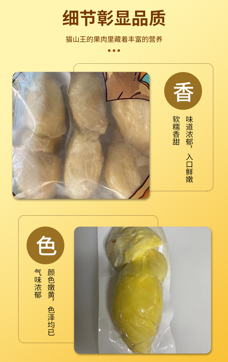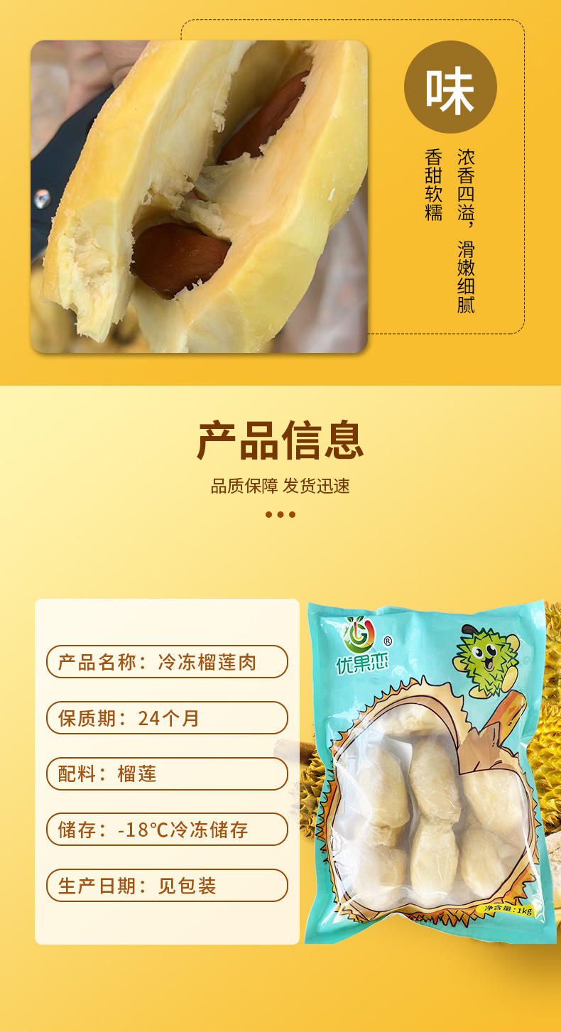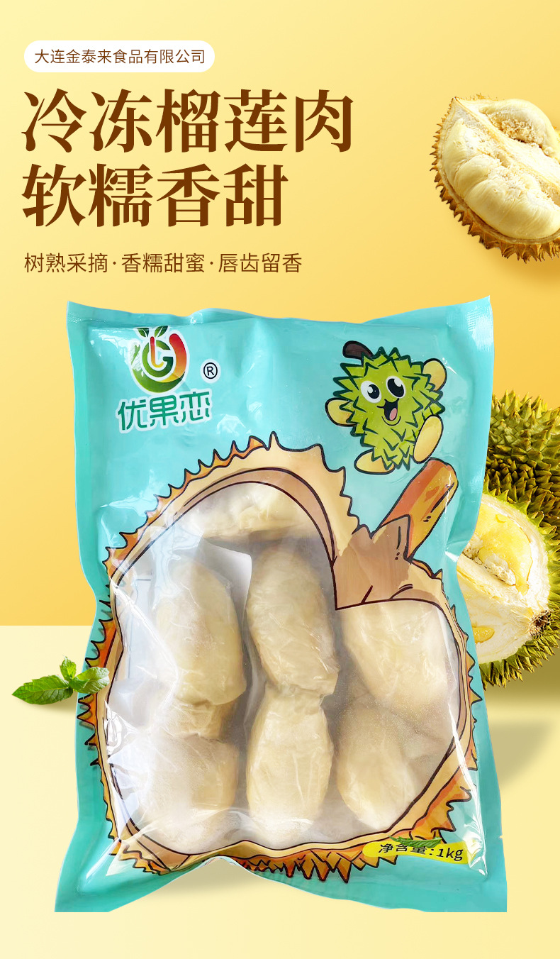 大连金泰来食品有限公司发布的金枕优蓝1Kg 冷冻榴莲肉果肉肥厚 丰盈甜蜜软糯 细腻绵滑唇齿留香图集库