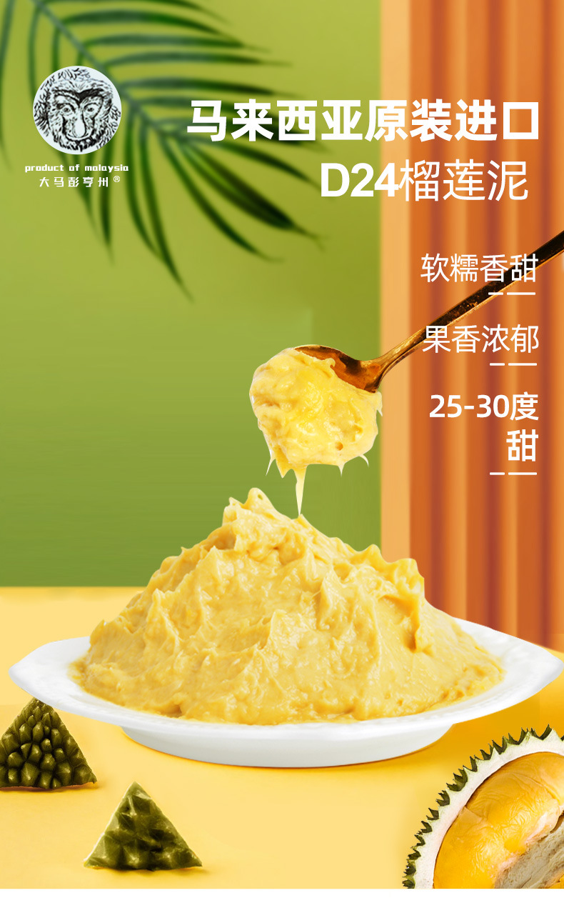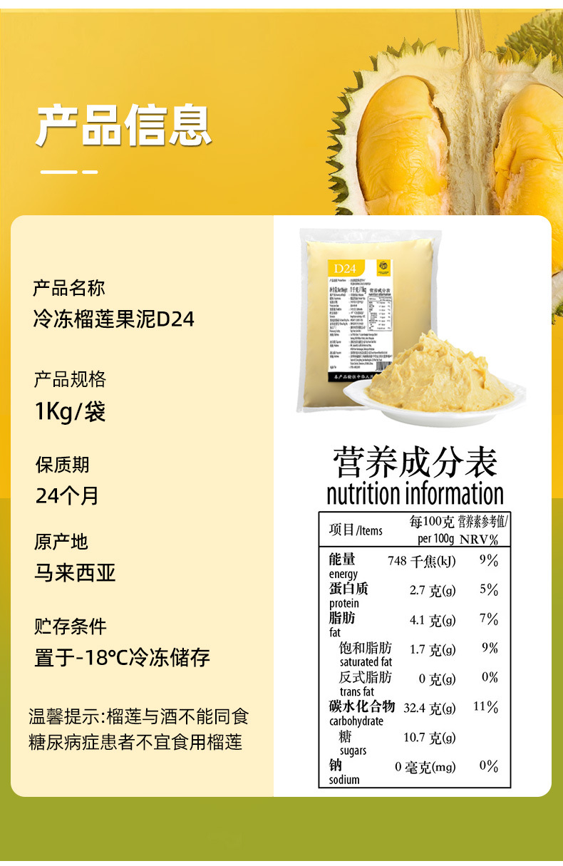 深圳市易丰食品有限公司发布的马来西亚D24苏丹王榴莲果肉泥 纯果肉泥冷冻榴莲烘焙原料餐饮商用图集库