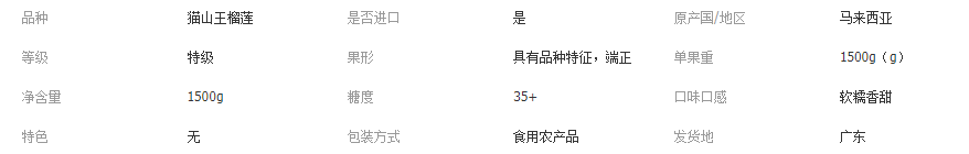 深圳市易丰食品有限公司发布的马来西亚D197猫山王榴莲整果 液氮冷冻果水果一件代发团购图集库