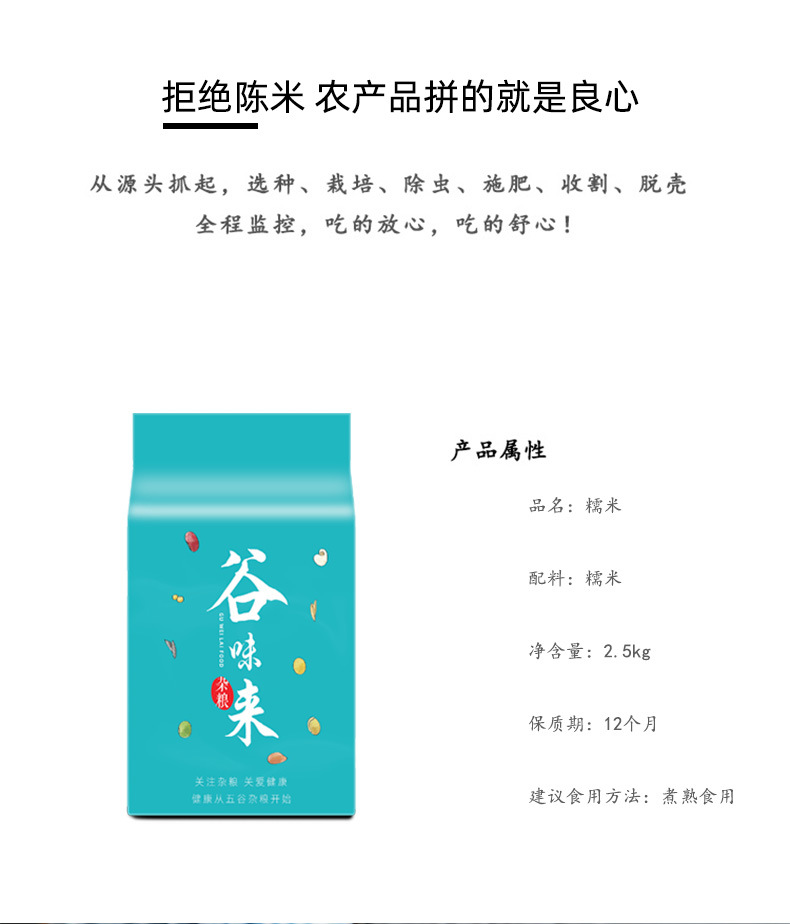 五常市兴旺米业有限公司发布的谷味来糯米5斤新米东北圆糯米农家杂粮新鲜香白江米粽子酒酿糯米图集库