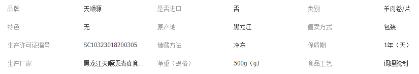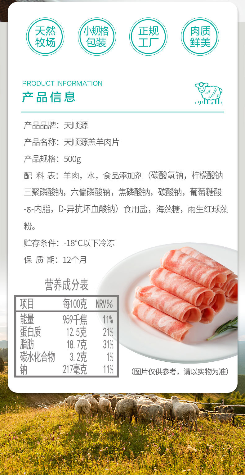 黑龙江天顺源清真食品有限公司发布的天顺源羔羊肉片500g 火锅炒菜冷冻食材 清真羊肉片羊肉卷涮肉图集库