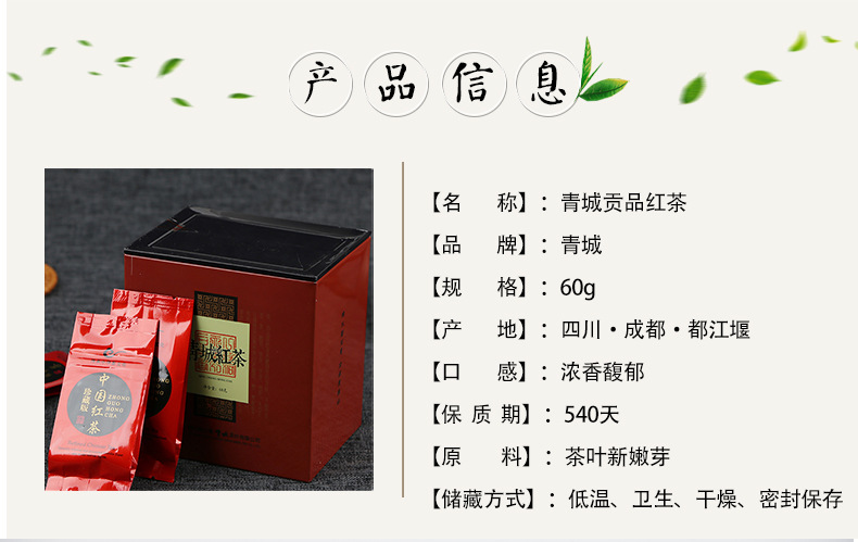 四川都江堰青城茶叶有限公司发布的铁罐装茶叶青城红茶汤色红亮4g小袋装60g一罐图集库