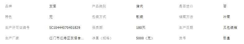 江门市江海区友恒食品有限公司发布的广式腊肠香肠餐饮酒楼煲仔饭广东香肠肠皇 5kg/箱腊肠腊味图集库