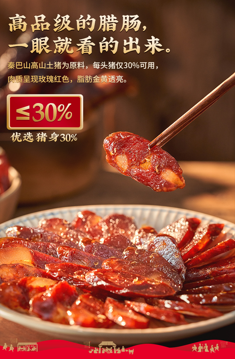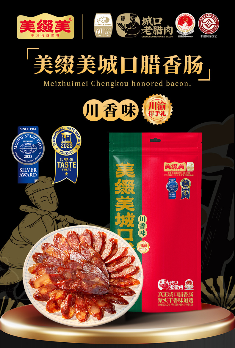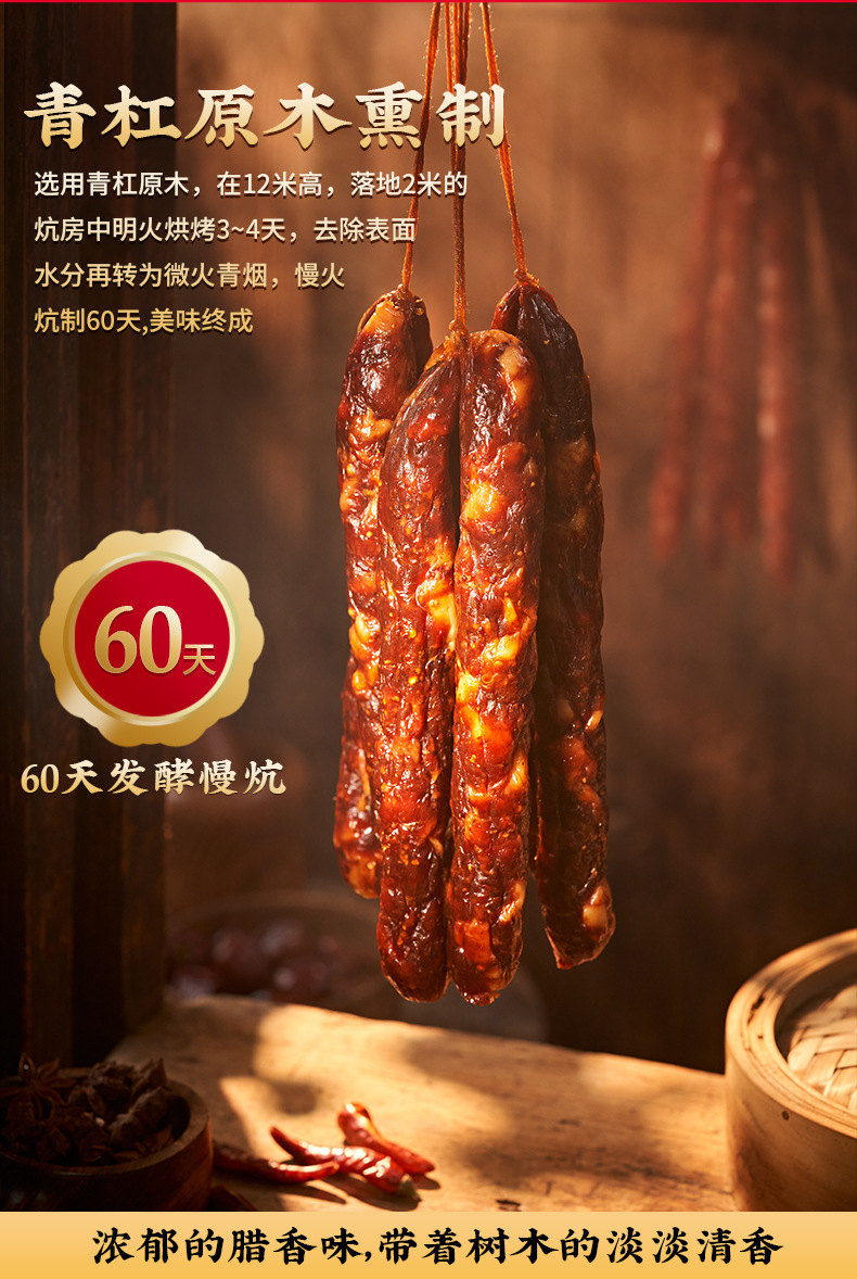 重庆美缀美食品有限公司发布的美缀美城口腊肠正宗重庆特产农家自制烟熏川味香肠甜香味厂家直销图集库