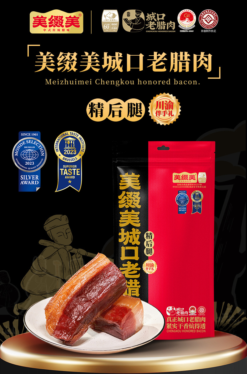 重庆美缀美食品有限公司发布的美缀美城口腊肉正宗重庆特产农家自制烟熏老腊肉后腿腊肉厂家直销图集库