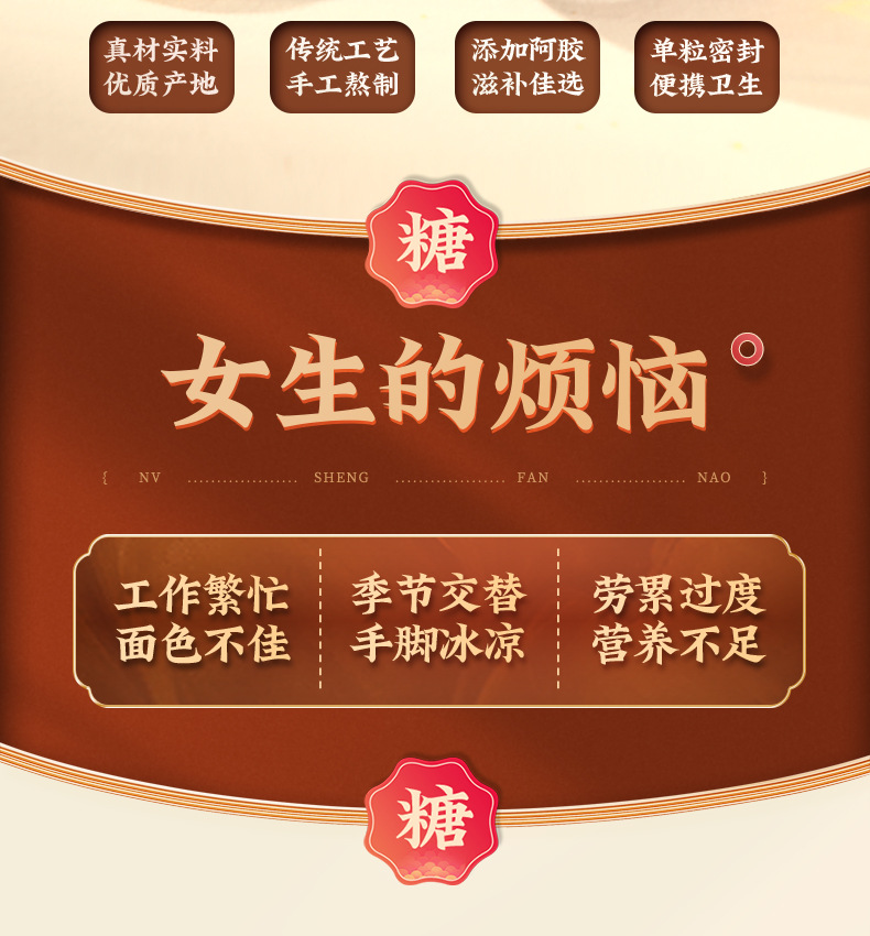 安徽燕之坊食品有限公司发布的燕之坊阿胶红糖黑糖块广西蔗糖经期即食老红糖块黑糖216g 独立包装图集库