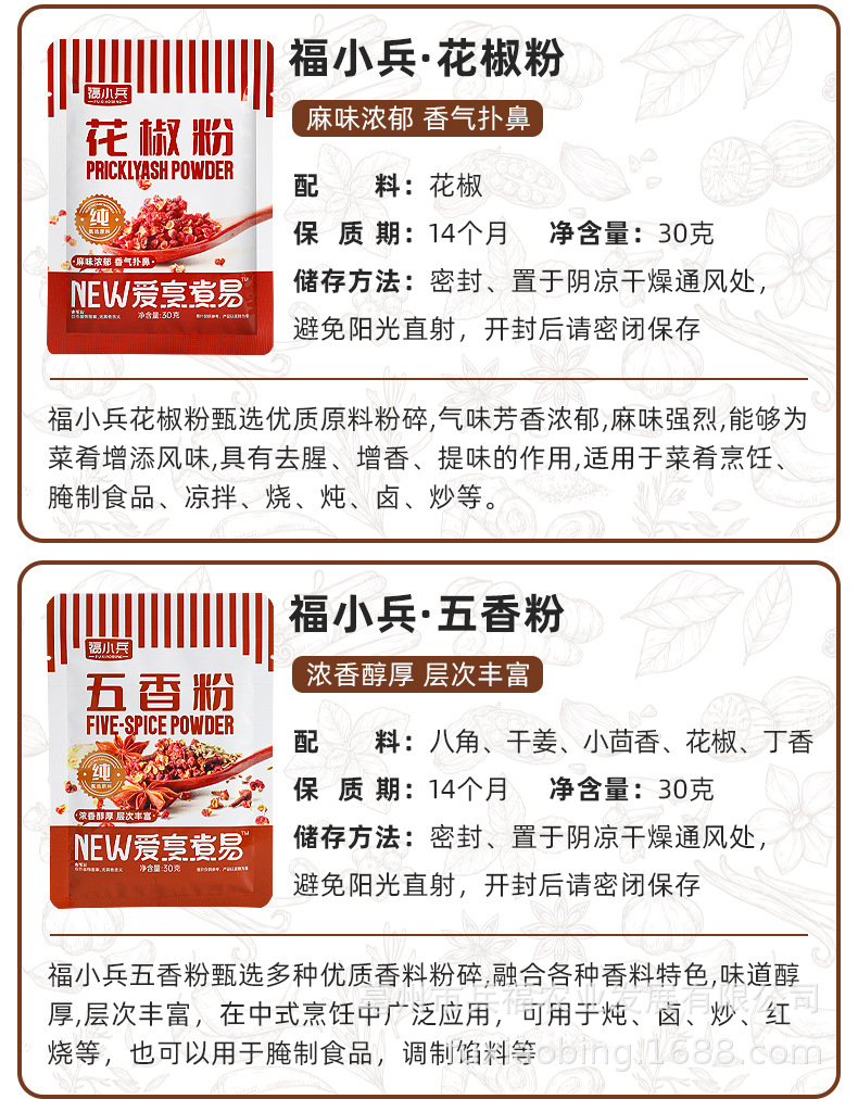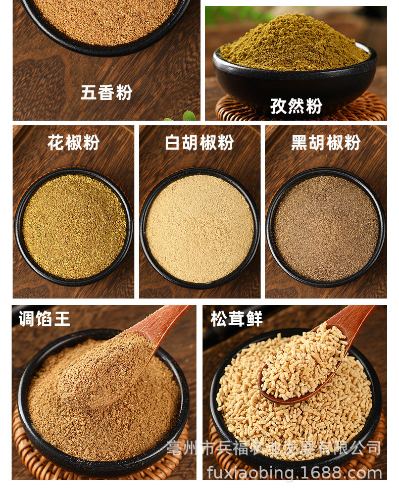亳州市兵福农业发展有限公司发布的源头工厂白胡椒粉家用袋装五香粉花椒粉餐饮用辣椒粉孜然粉批发图集库