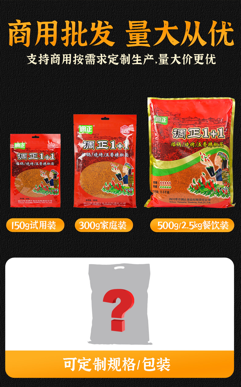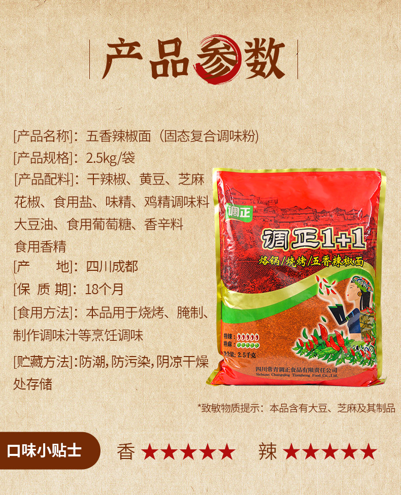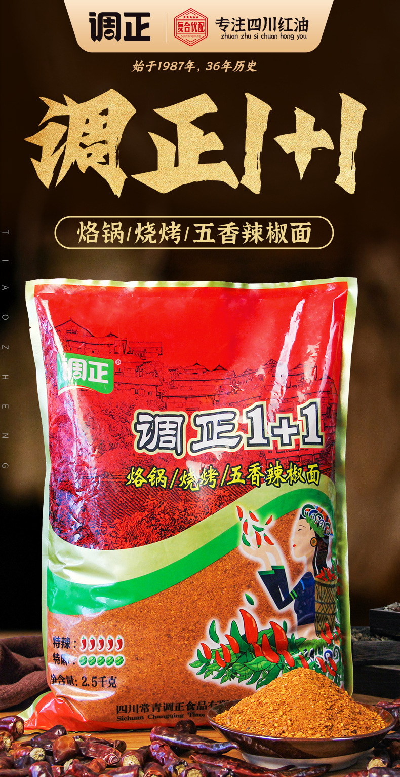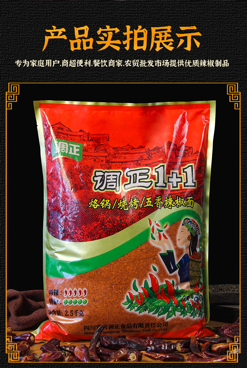 四川常青调正食品有限责任公司发布的调正贵州五香辣椒面2.5kg蘸料蘸水烧烤烙锅特辣干碟小豆腐烤肉1+1图集库
