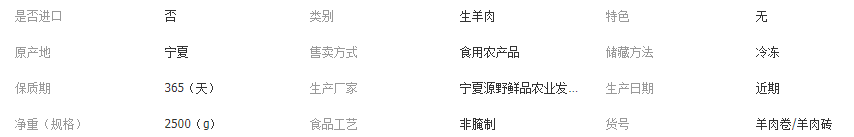 宁夏源野鲜品农业发展有限公司发布的宁夏盐池滩羊羔羊肉卷2500克涮羊肉火锅食材清真剔骨肉图集库
