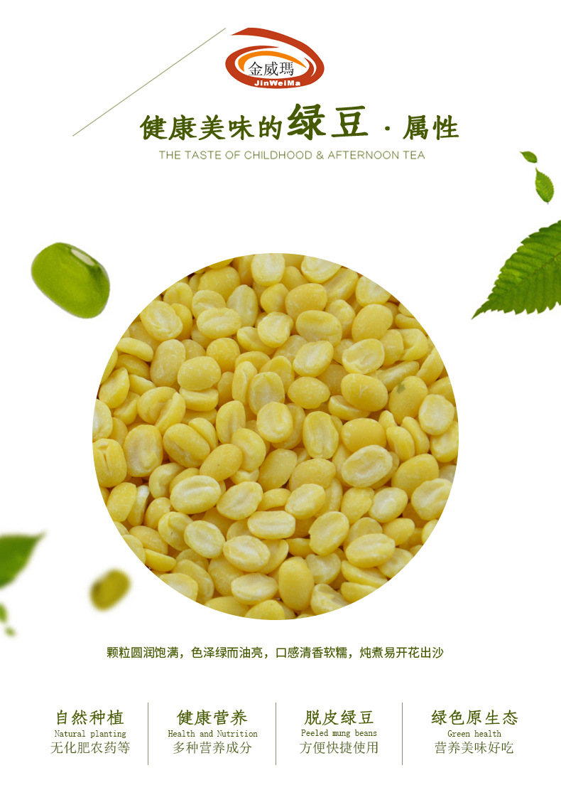 佛山市南海区金诺一农产品加工厂发布的【金威玛】厂家直供 馅料大颗粒圆粒绿豆仁 脱衣绿豆脱皮绿豆原料图集库