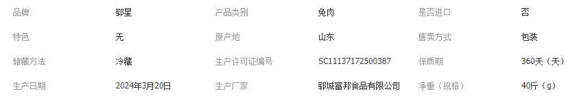 郓城富邦食品有限公司发布的兔肉 兔子肉带皮兔肉 烫皮兔肉图集库