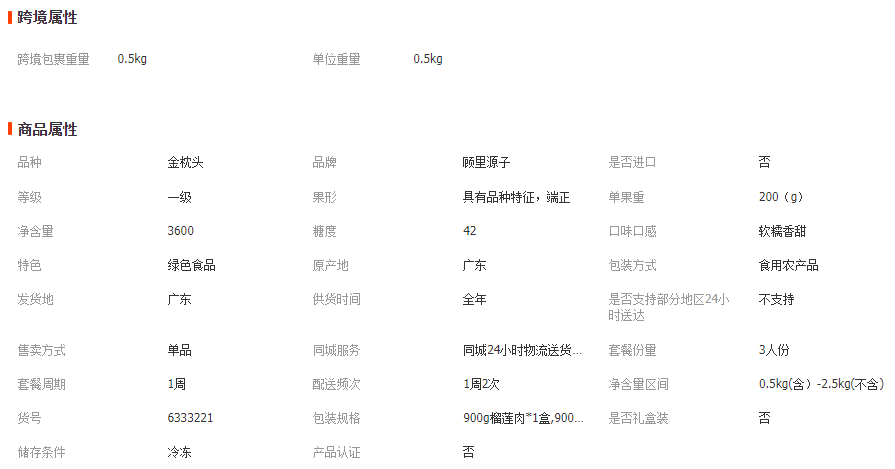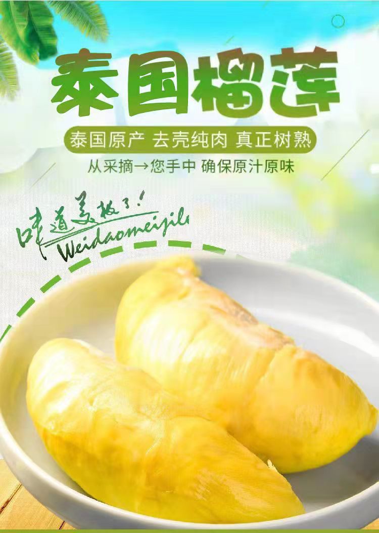 陕西顾里源子生态农业有限公司发布的顺丰包邮泰国冷冻金枕头速冻榴莲肉 进口新鲜榴莲冻肉 烤榴莲代发图集库