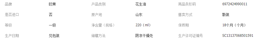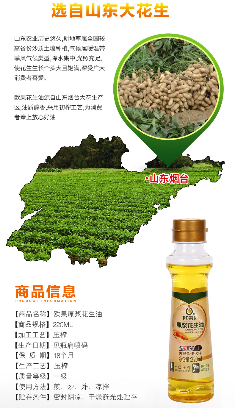 烟台欧果花生油股份有限公司发布的220ml瓶装欧果花生油 家用炒菜食用油社区团购年会福利原浆花生油图集库