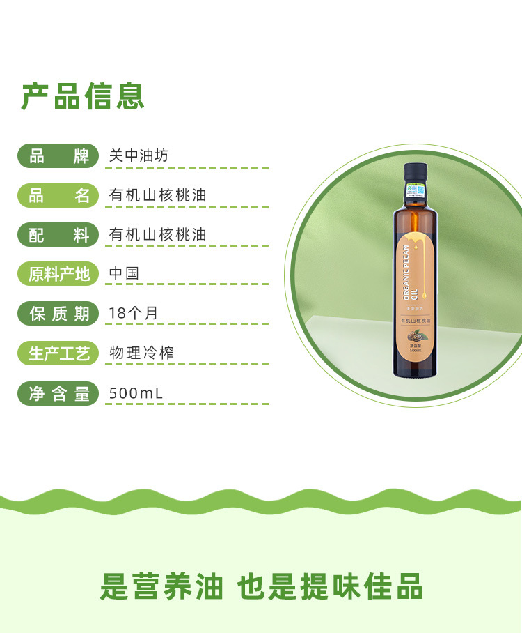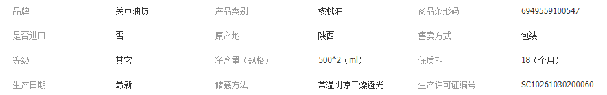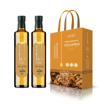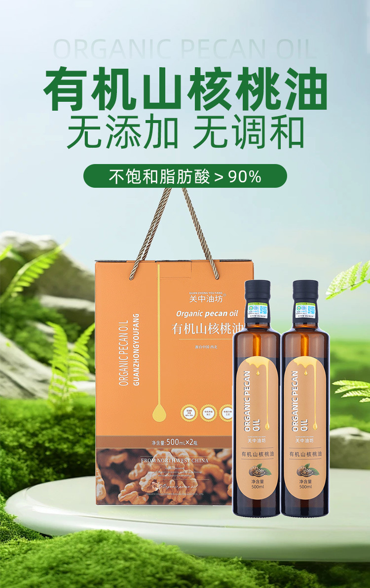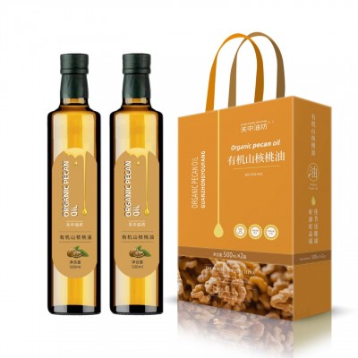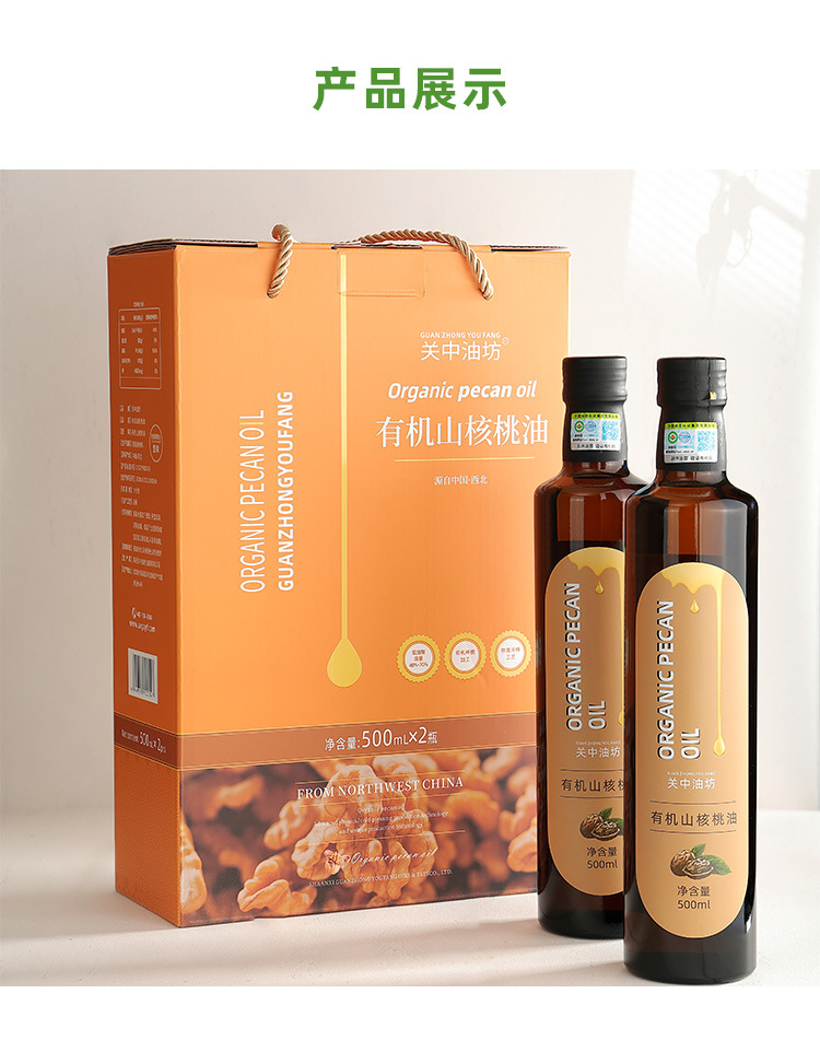 陕西关中油坊油脂有限公司发布的【整箱批发价】有机山核桃油500ml*2瓶礼盒装 低温物理压榨食用油图集库