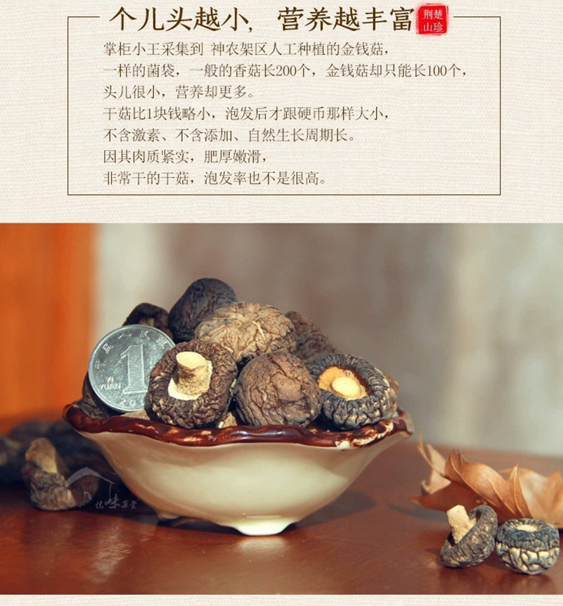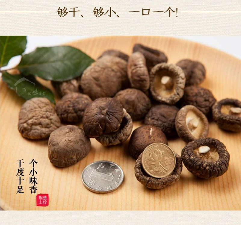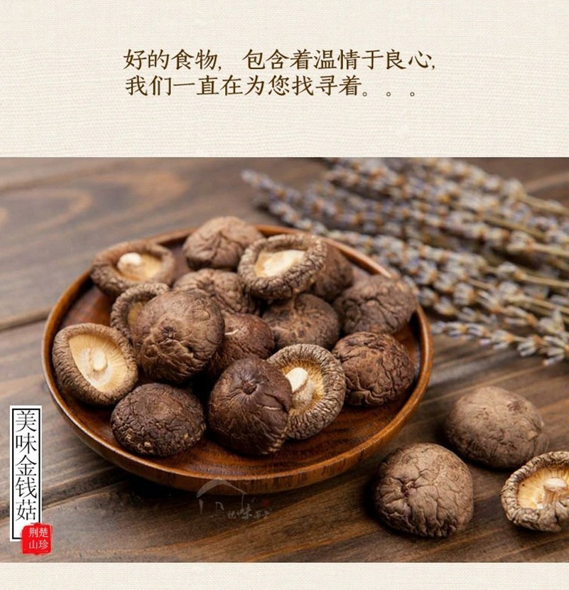 谷城县菇亿家种植专业合作社发布的小香菇干货 产地批发剪根肉厚商用农家金钱菇 春栽香菇干蘑菇图集库