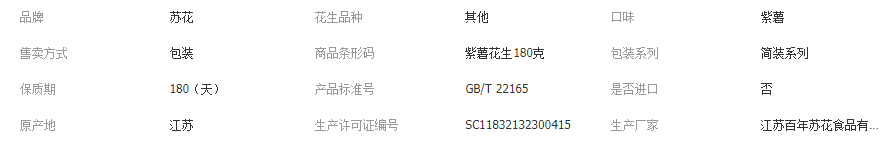 江苏百年苏花食品集团有限公司发布的苏花紫薯花生180克 办公室休闲零食小吃厂家一件代发批发图集库